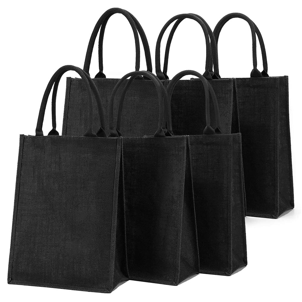 6pcs Jute Tote Lined Burlap Tote Bags With Handles Reusable Grocery Bag For Women Shopping Tote Plain Black Jute Bags Walmart Com
